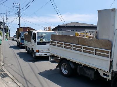 このような場合ご近隣のへのご挨拶から始まって搬出中に接触事故が起こらないようにと気配りに神経を使います。