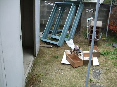 お話のように、粗方の大きな家財は、前回に殆ど処分が済んでいますので、動線養生(運び出し経路にマットを敷く)のみを行ないお庭に手際よく家財を纏められます。